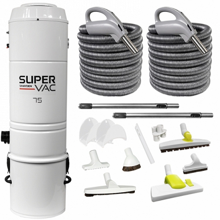 SV75 to najnowszy model w rodzinie odkurzaczy centralnych Hayden SuperVac, produkowanych w Kanadzie przez koncern Trovac Industries Ltd. Jest to sprawdzona konstrukcja, w której zastosowano Filtrację Hybrydową w połączeniu z nowoczesną, energooszczędną turbiną by-pass 6,6 cala (162mm). W obudowie praktycznie wyeliminowano tworzywa sztuczne, a całość jest wykonana jest ze stali malowanej proszkowo. Producent turbiny, firma Ametek Lamb gwarantuje wytrzymałość na poziomie 1500+ godzin pracy. Parametr taki osiągają najlepsze odkurzacze dla zastosowań komercyjno-przemysłowych. Jakość i trwałość zastosowanych podzespołów sprawia, że producent odkurzacza centralnego udziela 10-cio letniej pełnej gwarancji na całe urządzenie.