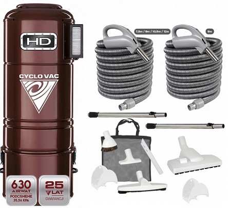 Jednostka Cyclo Vac HD 801C to najnowszy model wykorzystujący pełną filtrację cykloniczną. Model dedykowany jest do średnich i dużych domów z instalacją nie przekraczającą 14 punktów ssących. W modelu HD 801C został zastosowany mocny silnik Ametek, pozwalający uzyskać 630 AirWatt mocy ssącej, przy głośności urządzenia poniżej 60dB!